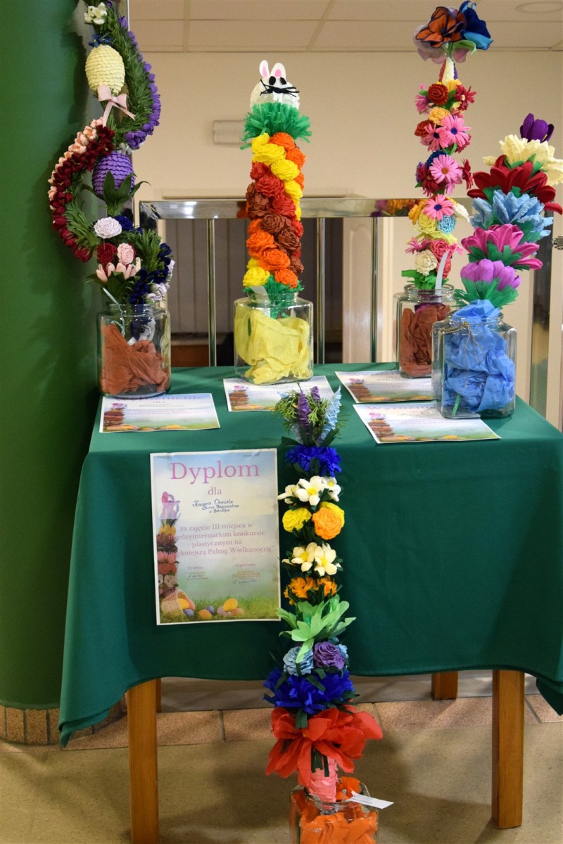 Palmy wielkanocne można obejrzeć w holu bursy, na przygotowanej wystawie.