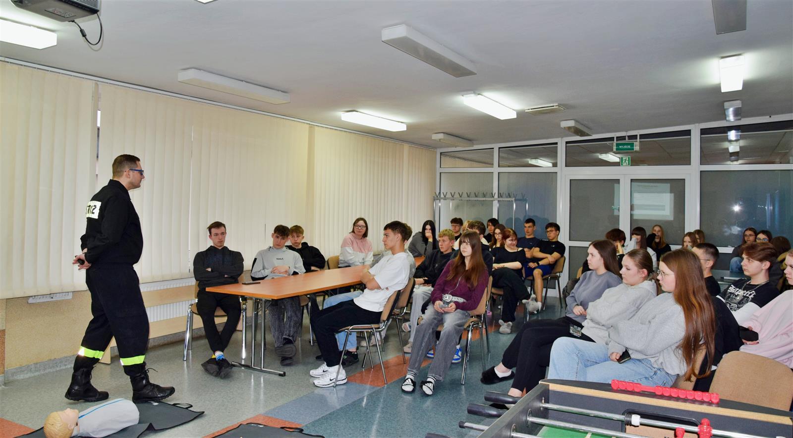 Dnia 26 marca br. odbyło się spotkanie z przedstawicielami Ochotniczej Straży Pożarnej. Miało ono charakter szkoleniowy i było poświęcone przede wszystkim zasadom udzielania pierwszej pomocy. Podczas zajęć uczestnicy poznali podstawowe czynności ratunkowe, w tym zasady resuscytacji krążeniowo-oddechowej (RKO), ocenę stanu poszkodowanego oraz sposób postępowania w nagłych sytuacjach. Istotnym elementem spotkania były ćwiczenia praktyczne, które umożliwiły utrwalenie zdobytej wiedzy. Zdobyte umiejętności mogą okazać się niezwykle przydatne w sytuacjach zagrożenia życia i zdrowia.
