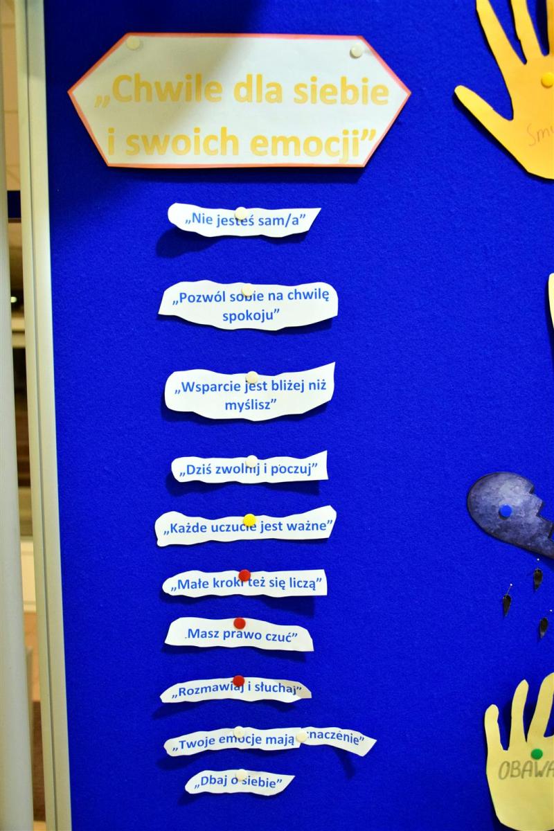 Kolejnym elementem było stworzenie symbolicznych balonów z imionami uczestników. Pod balonami umieszczono przestrzeń zatytułowaną „Strefa emocji i relaksu” – miejsce wyrażające to, do czego młodzież ma prawo: do odpoczynku, rozmowy, ciszy, płaczu, akceptacji, zrozumienia czy bycia wysłuchanym.