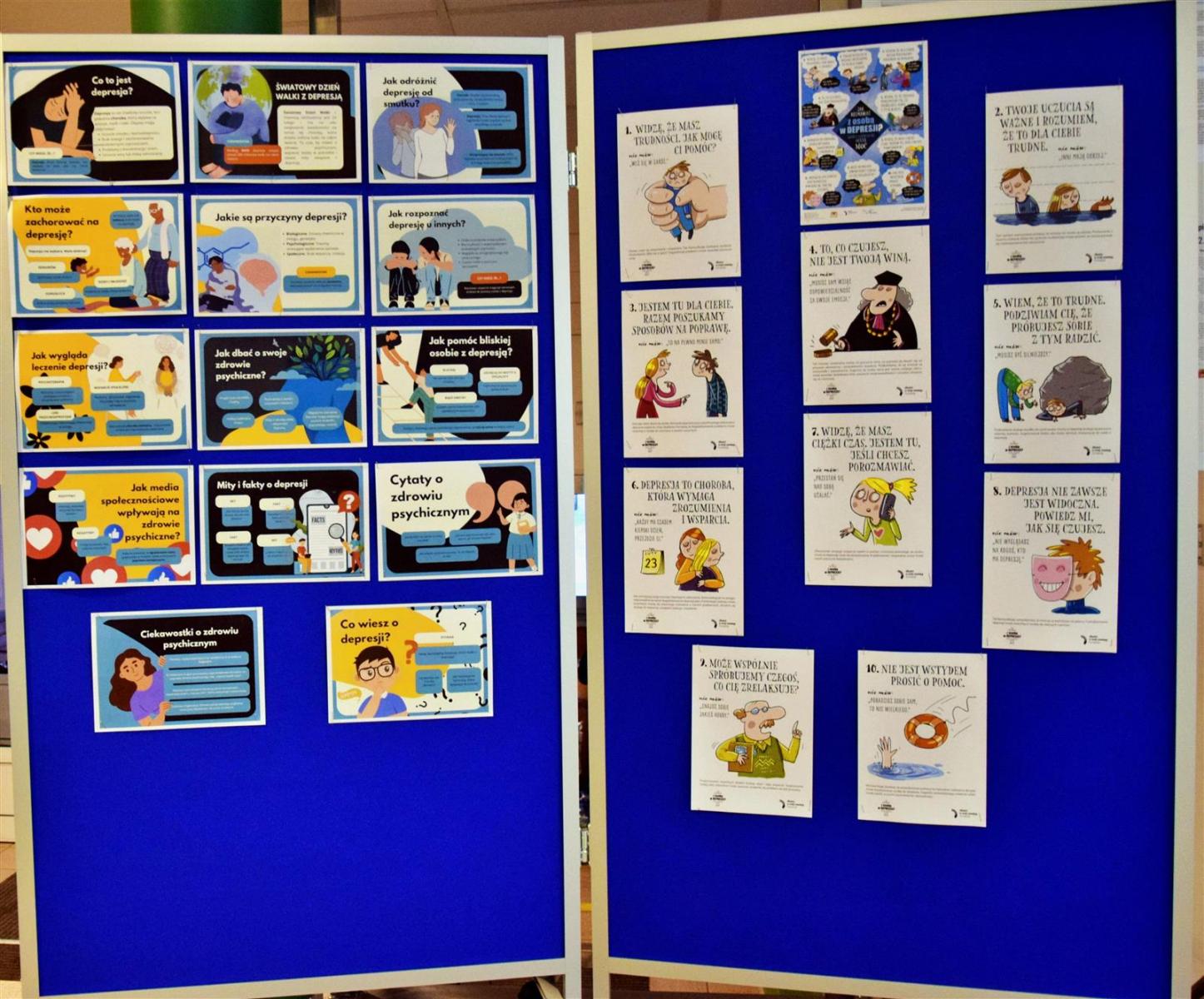 W holu bursy została przygotowana wystawa pt. „Co wiesz o depresji?”, która przybliżyła informacje o objawach depresji oraz wskazała, gdzie można szukać pomocy.