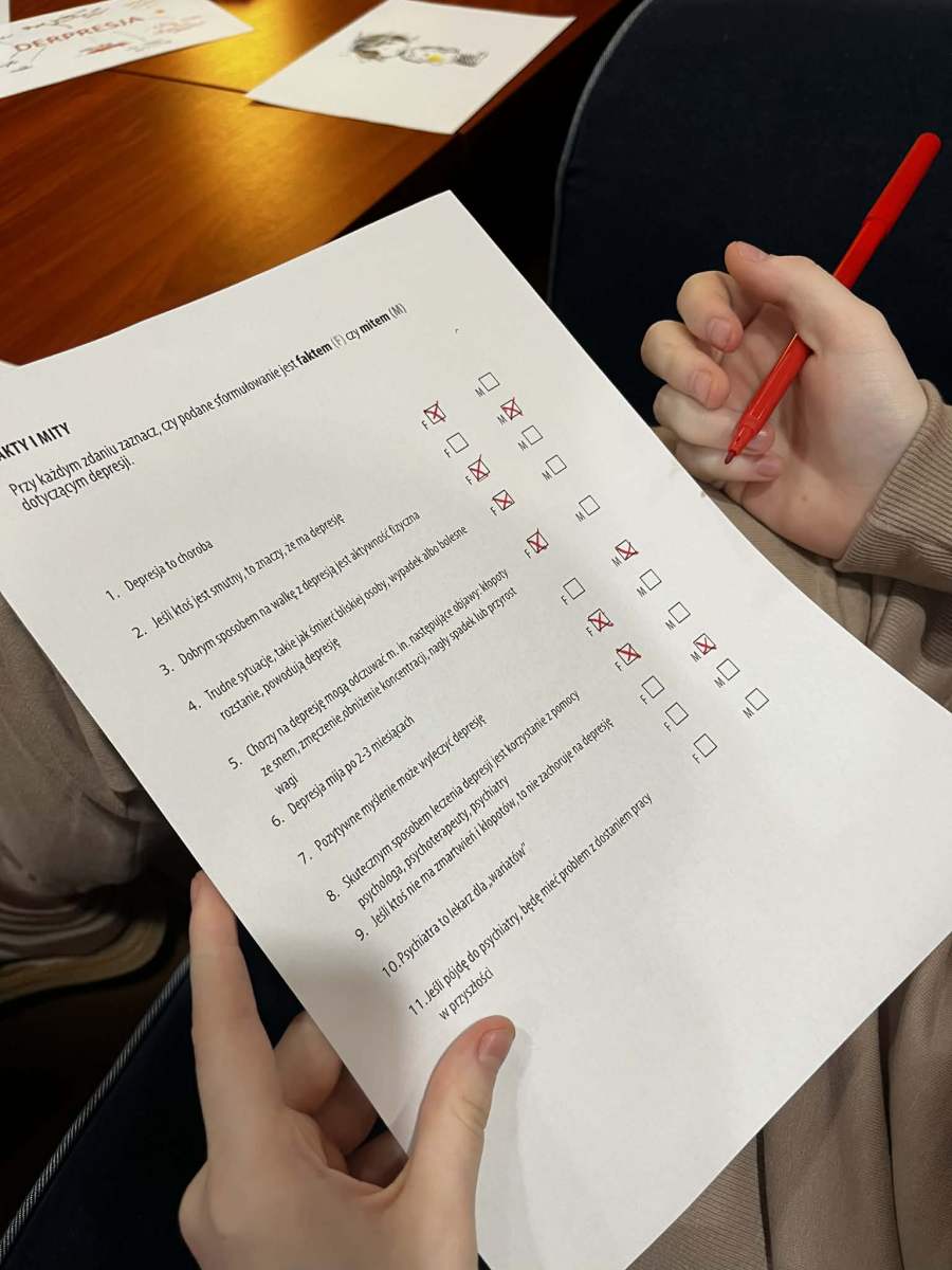 Wychowankowie wzięli udział w zajęciach edukacyjnych „Mity i fakty o depresji”, podczas których dowiedzieli się, czym jest depresja, jak ją rozpoznać oraz jak wspierać osoby przeżywające kryzys.